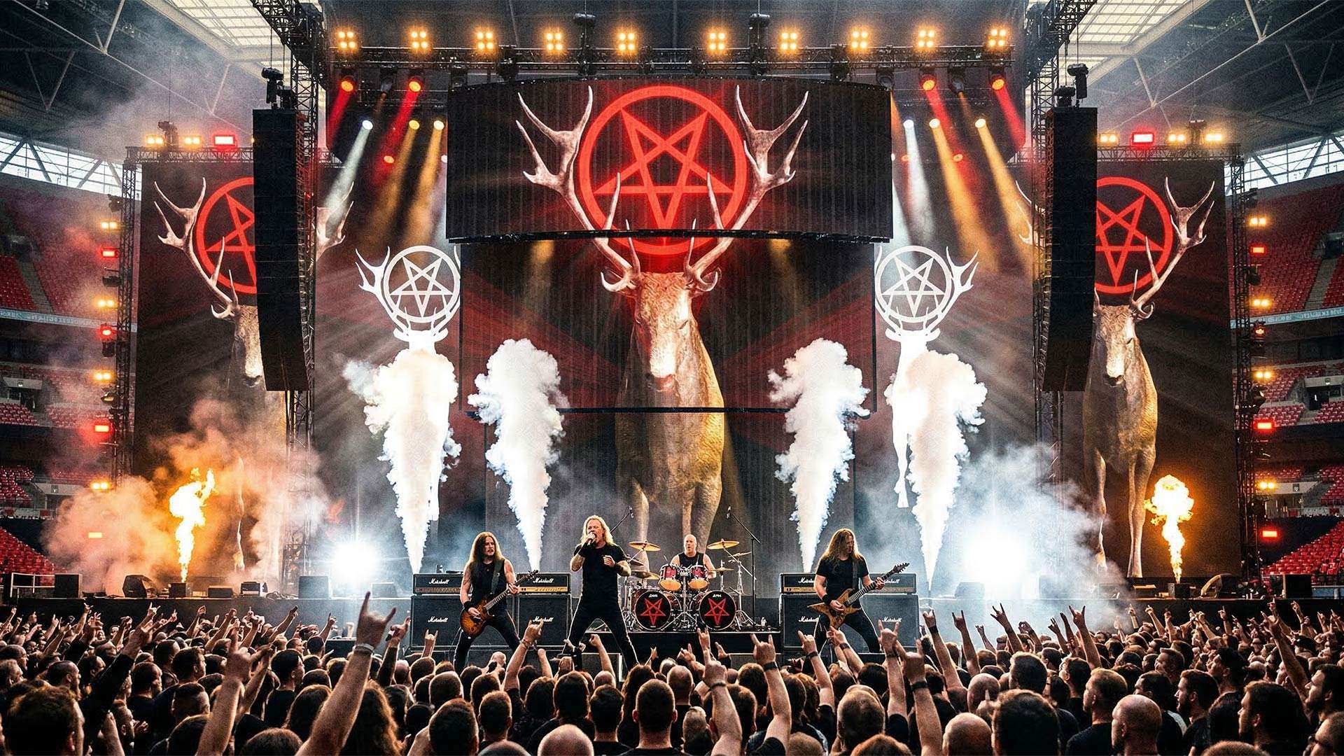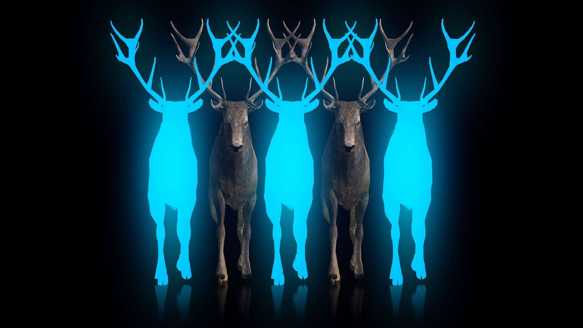 A powerful collection of ritual-inspired stag visuals combining symmetry, motion, and glowing occult elements to create a dark and immersive stage atmosphere for live performances.